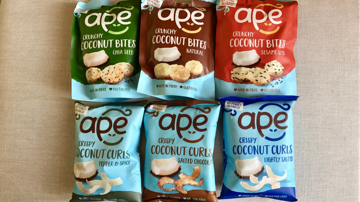 Ape Coconut Snacks kindly sent me 6 packs of their products to try and review, 3 packs of coconut curls and 3 packs of coconut bites.