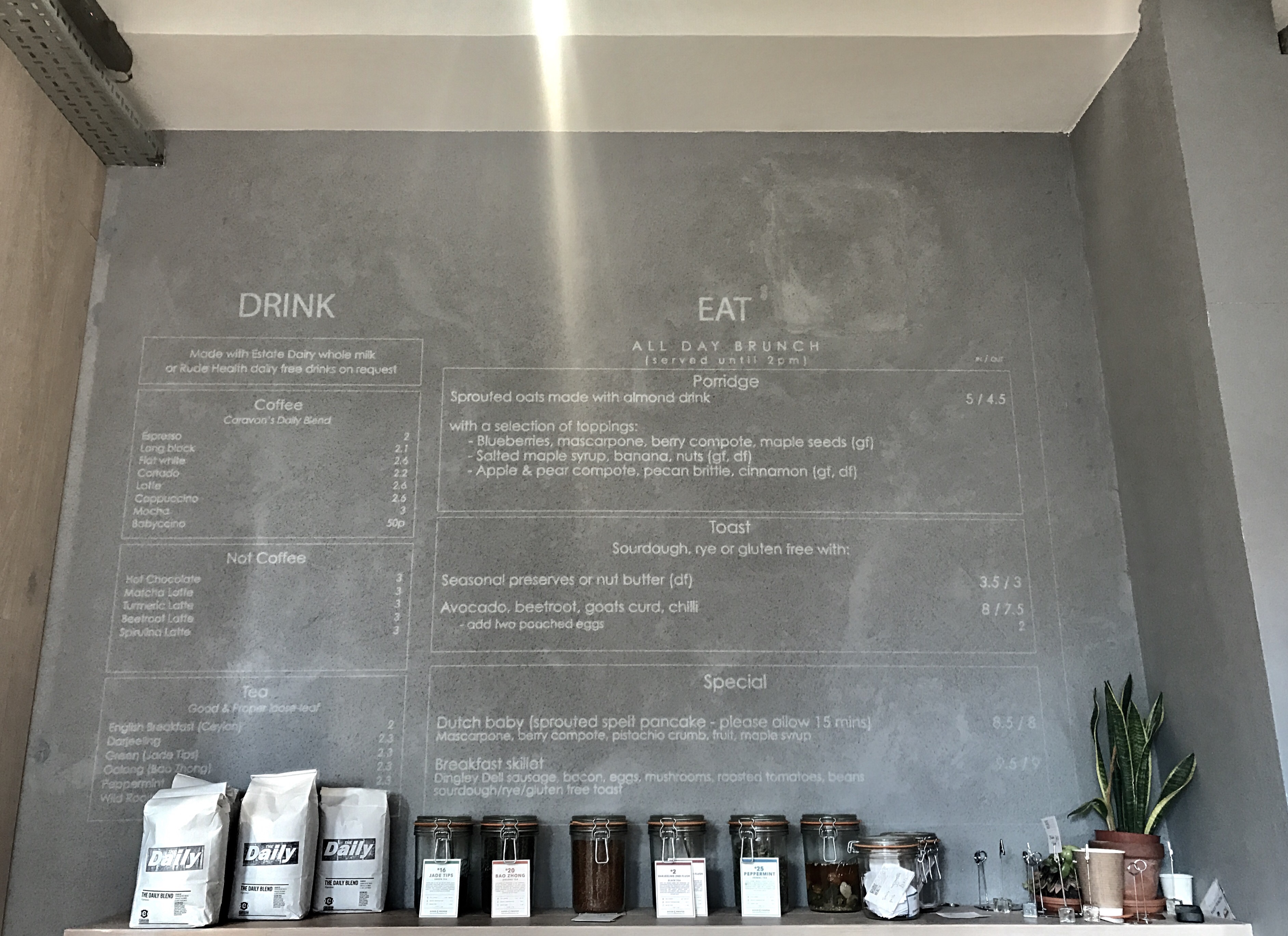 The brunch menu is projected on the wall behind the counter, which I had never seen before.