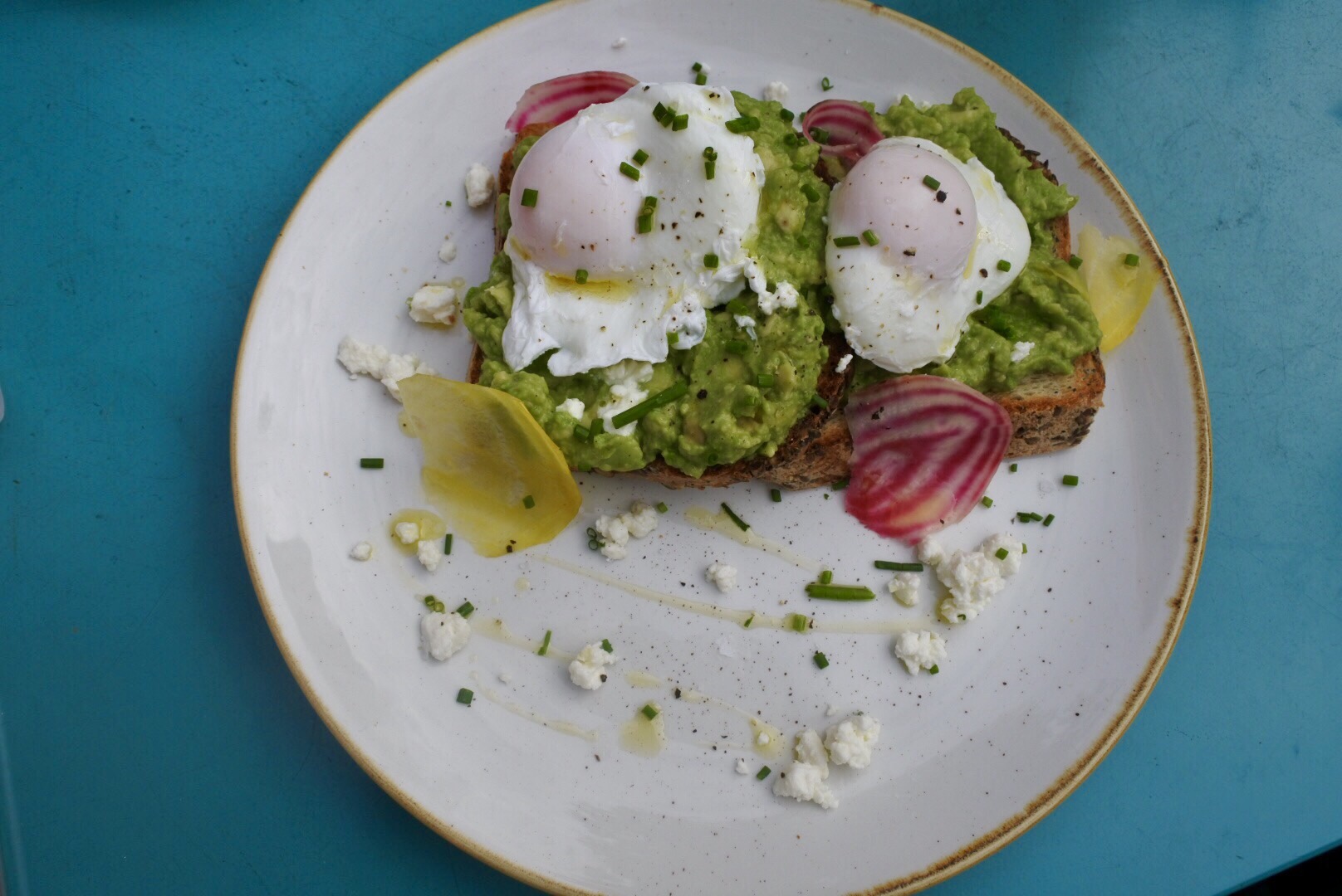 I chose to have the smashed avocado, feta and beetroot on gluten free toast, with two poached eggs. I must say their gluten free bread is one of the best I have ever tasted!! Thick cut, doesn’t fall apart and tasty. I love feta but I wasn’t so sure about it with this dish – although I asked for the dish without chilli (because of my fodmap diet), so the feta may have helped to cool the chilli down.