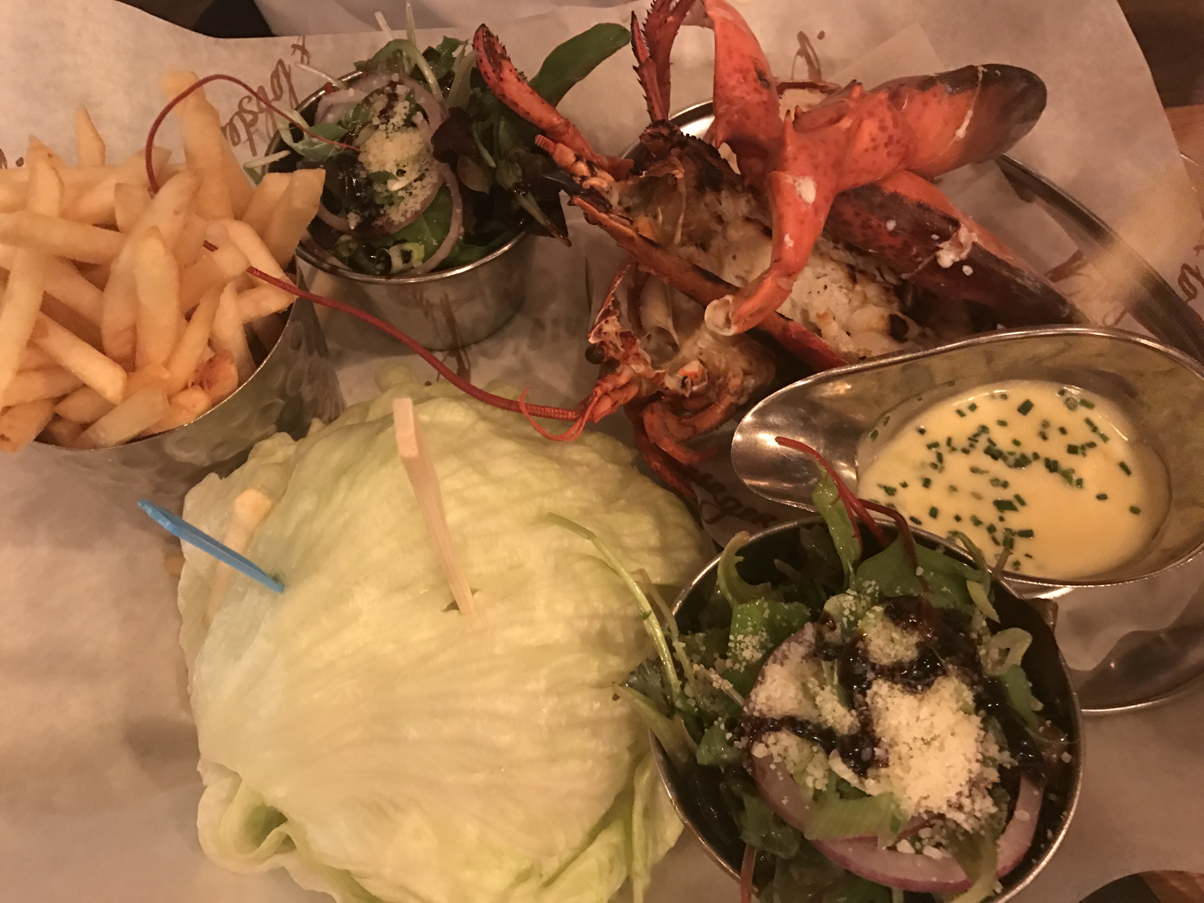 To note the middle picture above is Mr FFL’s dinner, he had half a lobster and a burger!! He confirmed the burger was very good. To note he has two salads, as the salad does come with onion, so it’s not fodmap friendly! Luckily for me Mr FFL is my food dustbin.