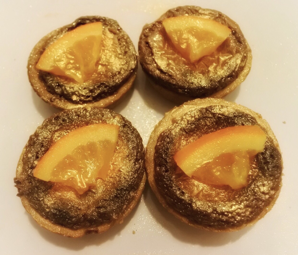 Mr FFL and I got in the kitchen and created this low fodmap and gluten free recipe; a mince pie case, chocolate and ginger brownie filling topped with a candied orange.