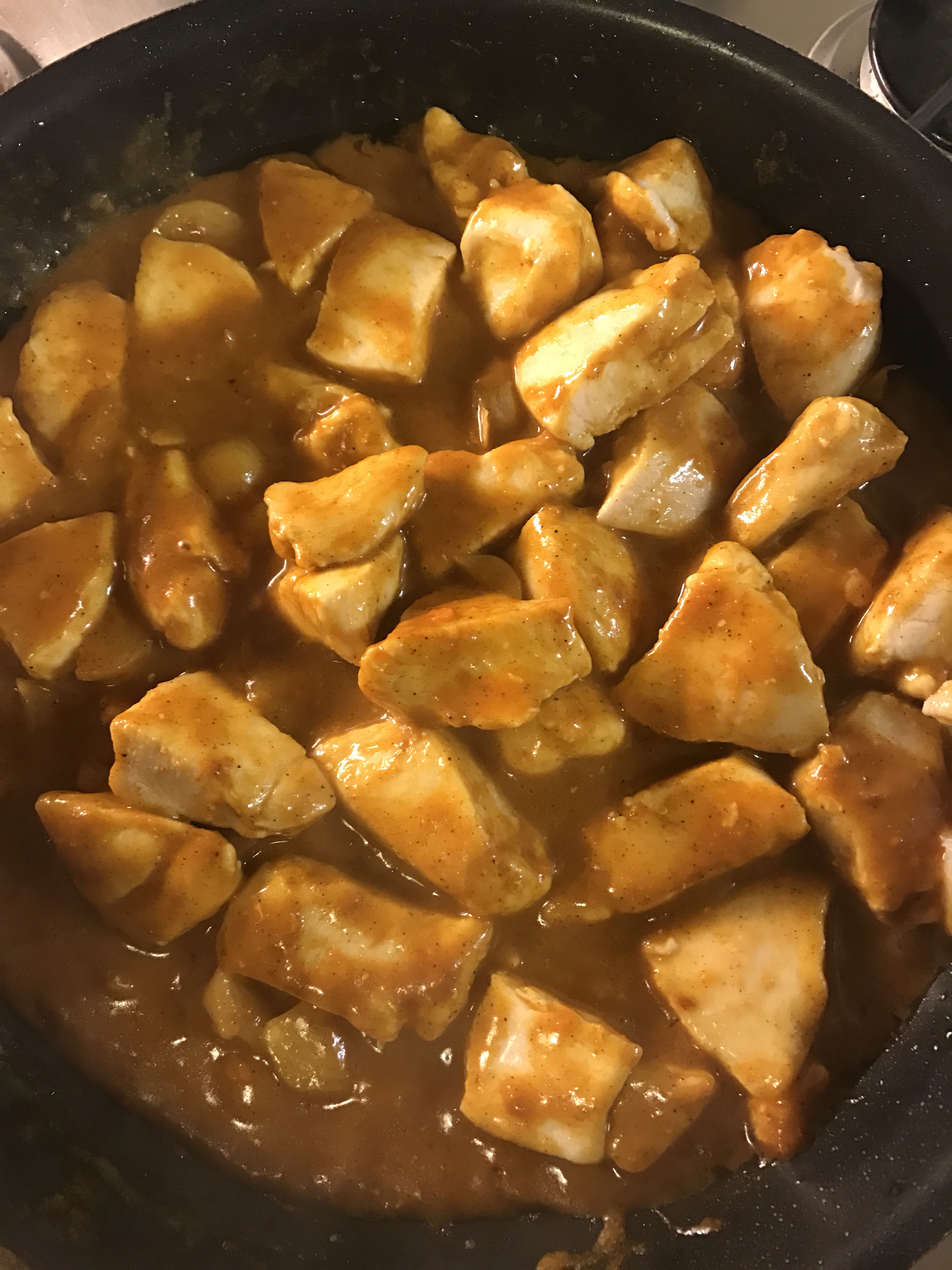 I created quite a simple dish for my first foray into the Fodmapped product range. I fried diced chicken breasts in a pan and then added the Butter Chicken Curry sauce. I wanted to ensure I didn’t mask the flavour of the sauce in any way. I added in some spinach and peas to add in some nutrients.