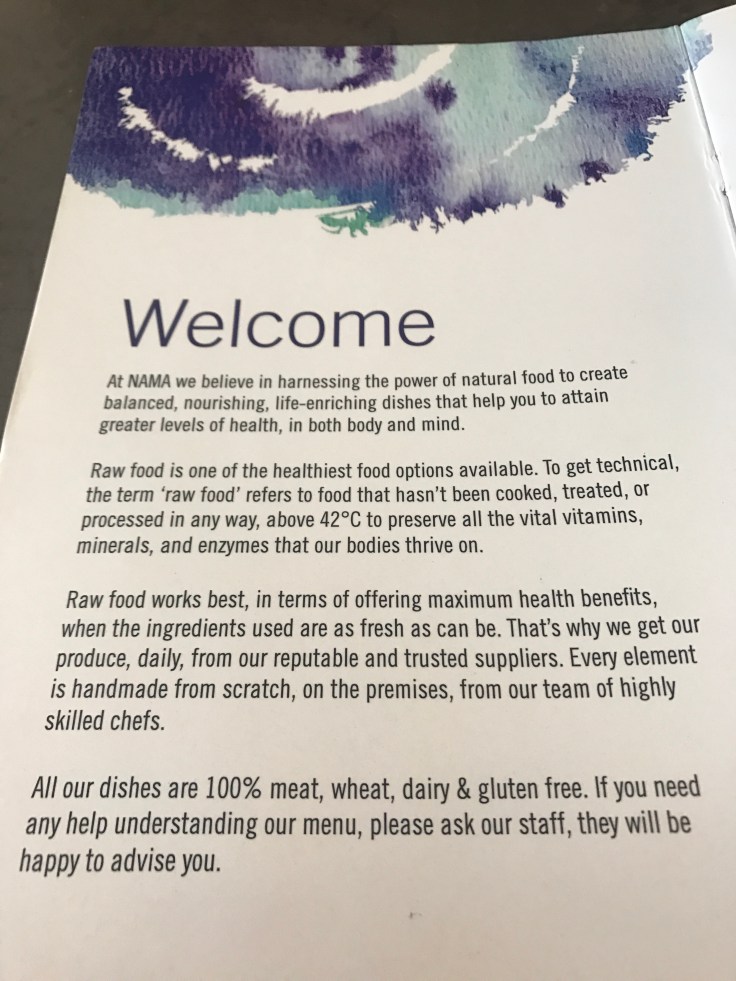 Nama is a raw foods restaurant based in Notting Hill. The restaurant is meat, wheat, dairy and gluten free.