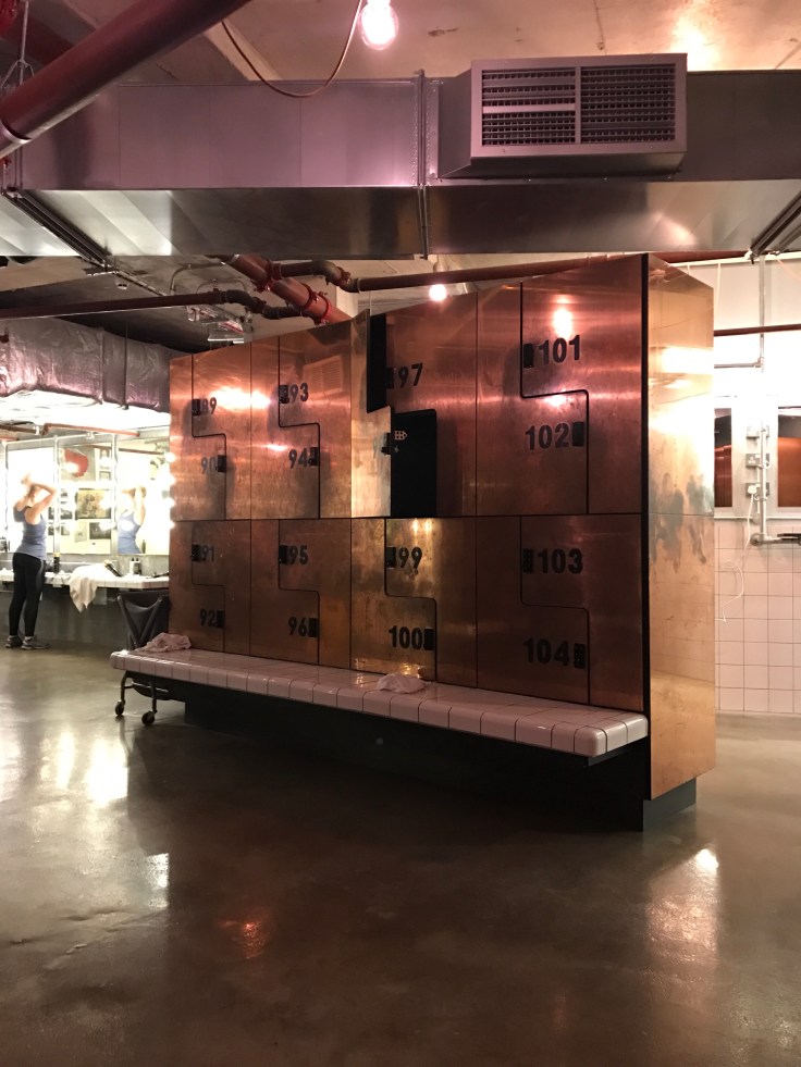 They were massive, and had thought of everything. Showers, toliets, copper fronted lockers, a special area post workout to re do your make up and hair, and my favourite part, a Smeg fridge full of chilled towels to help cool you down after you had worked hard in a class.
