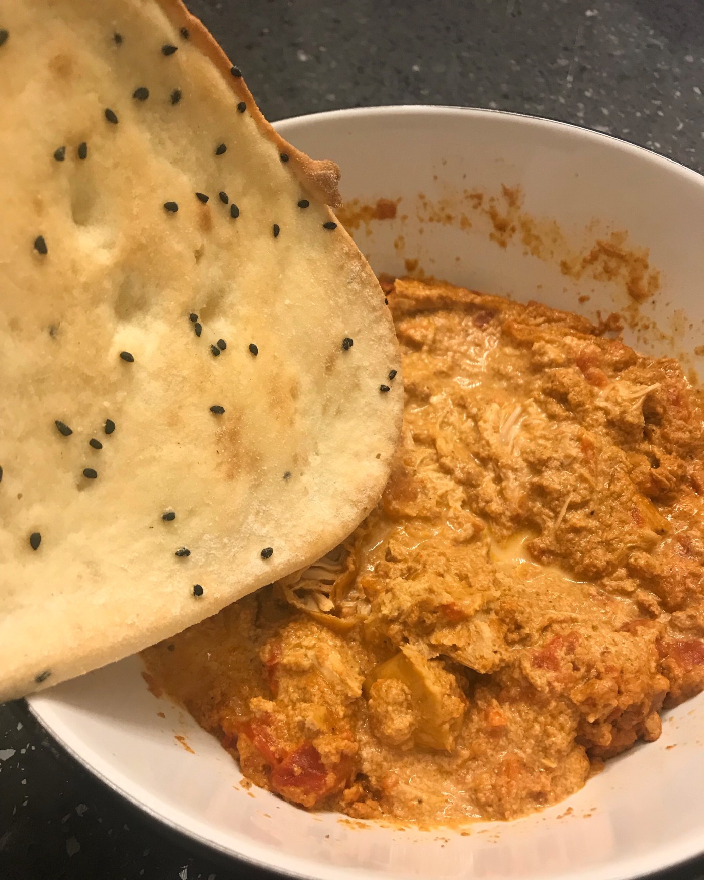 This curry is slow cooked so takes 8.5 hours and serves 4 people, or what Mr FFL and I do is make it all and save half for another night. In the picture above I have added a Marks and Spencer’s Gluten Free Naan, which is also Fodmap friendly!
