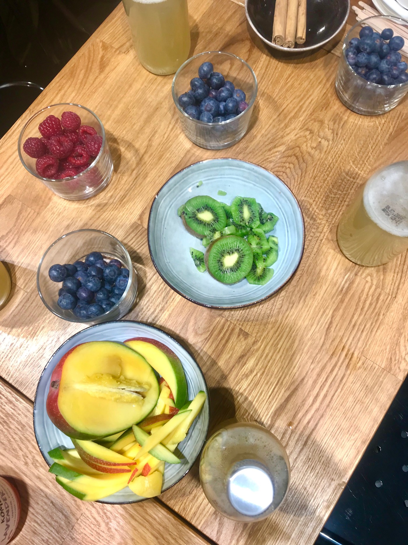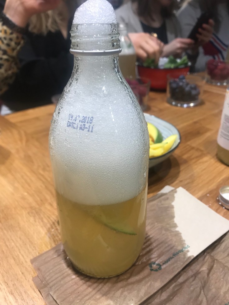 I actually made my booch fizz all over the table, by adding mango, which is full of water! After that embarressment, one of the owners of Wild Fizz filled my bottle of booch to the top so i could add more flavours. My final recipe was mango, raspberries and kiwi.