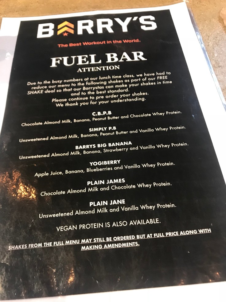 As I went to a lunchtime class (12 noon), the class included a protein shake – which was music to my ears (and muscles….). I chose the chocolate and peanut butter shake with almond milk. So perfect for low fodmappers!