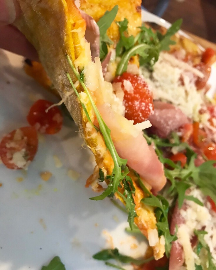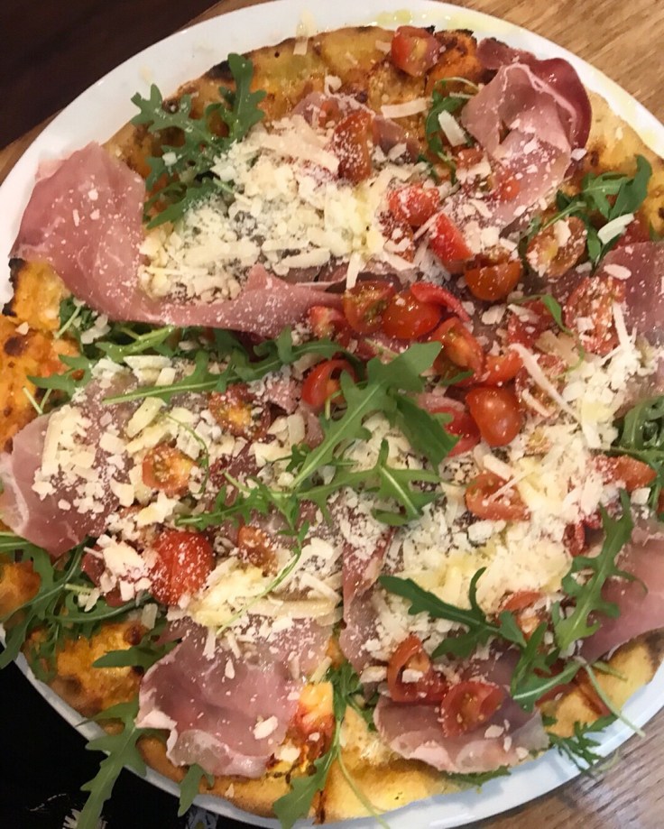 I chose the gluten free turmeric base and it was delicious! The pizza I chose was called ‘Le Freak’ which was mozzarella, prosciutto crudo, rocket, grana cheese and cherry tomatoes.