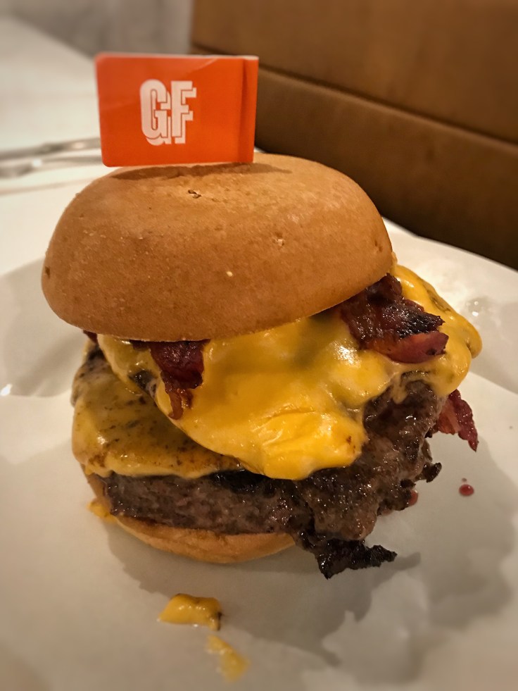 After a few hours of shopping, Mr FFL and I headed over to Byron to refuel. I didn’t have a starter as I wanted to make sure I had room for my main. I chose the bacon double cheese burger with gluten free bun and gluten free fries.