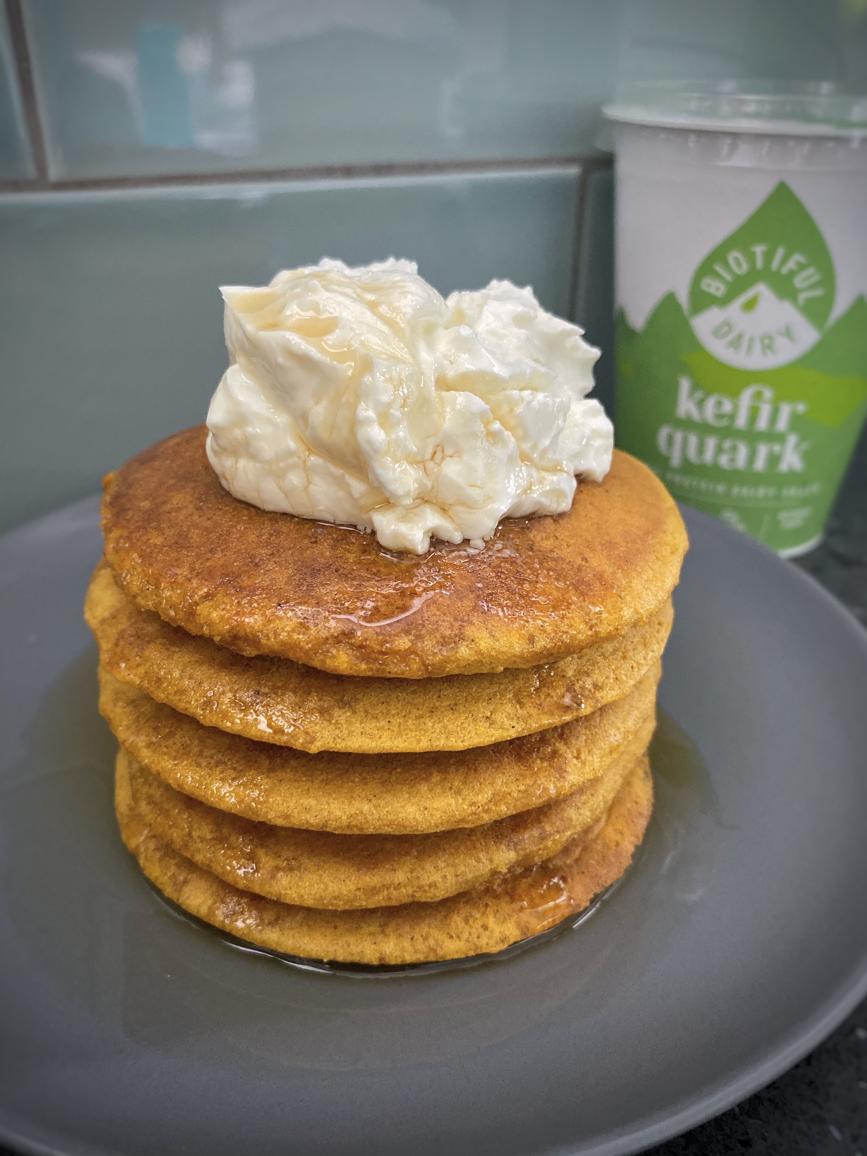 I created these gluten free pumpkin spiced pancakes on a weekend and topped with the glorious Biotiful Dairy Kefir. I was challenged by Biotiful Diary to make simple swaps with my food, to add more kefir to my diet. This is an example of a way of using kefir in a sweet dish.