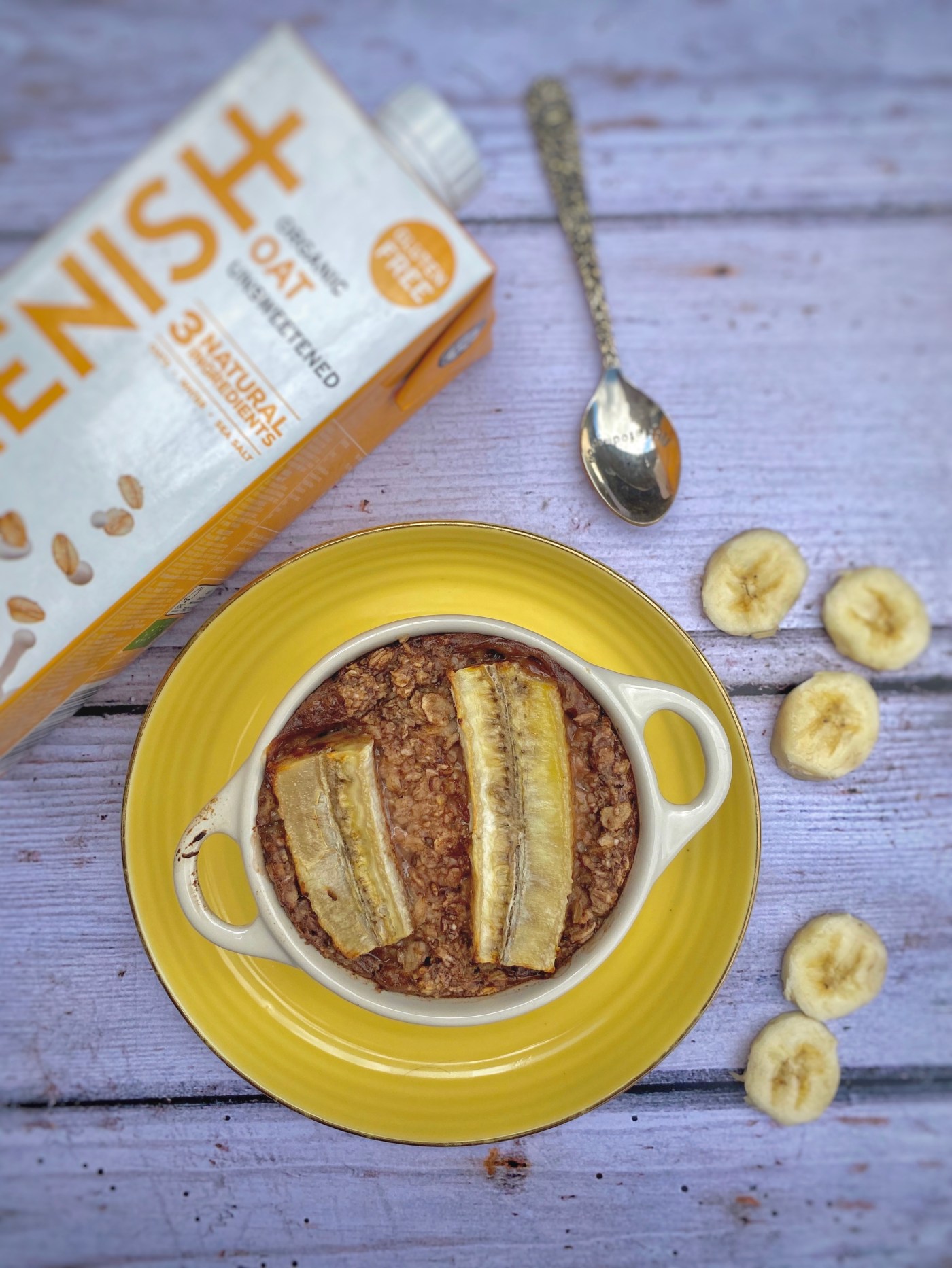 As I have fallen in love with baked oats in 2020, I thought I would mix it up and try a different flavour (from raspberry and chocolate). Banana and chocolate works just as well and tastes delicious!