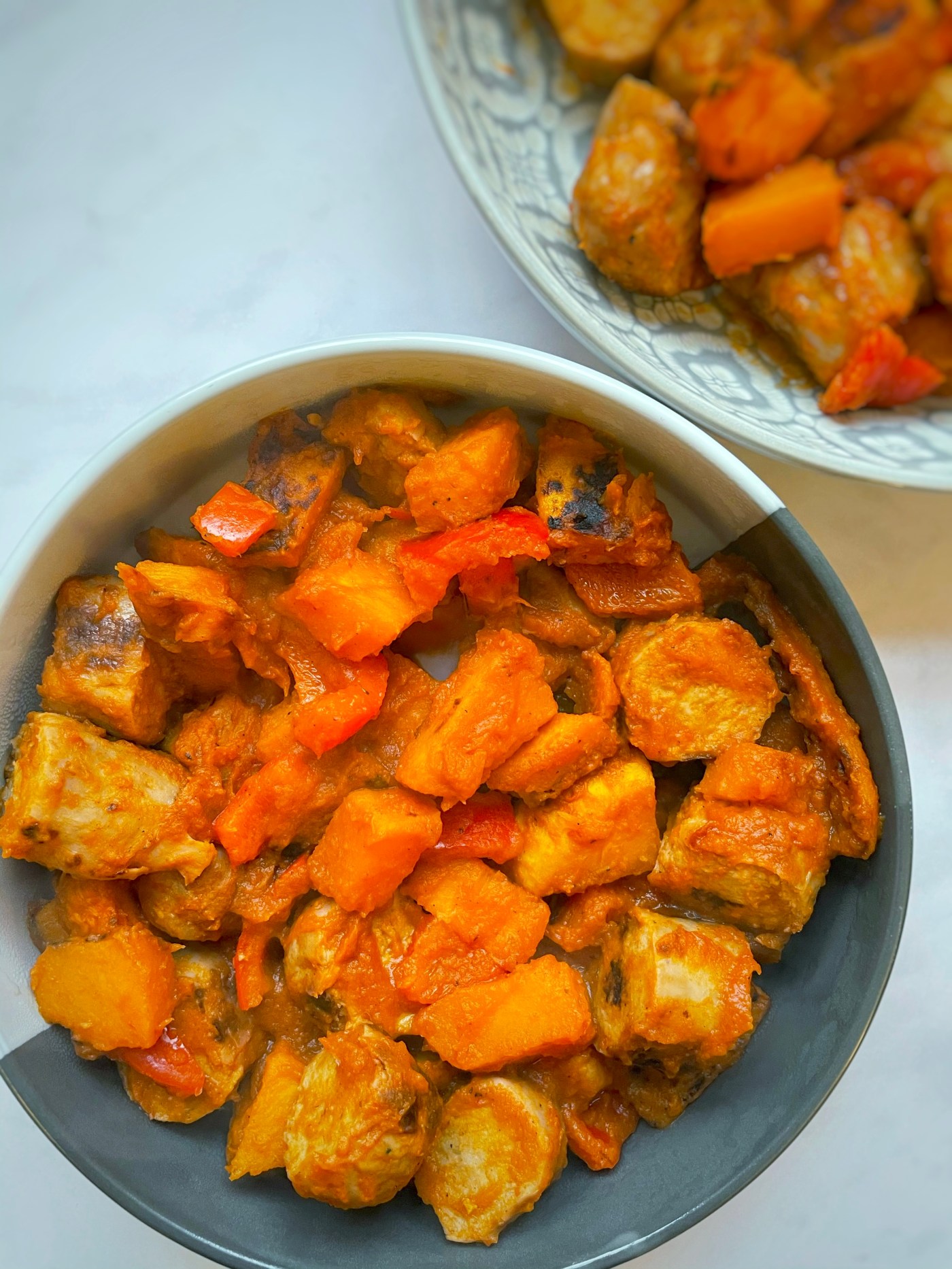 - Take the gluten free sausages and butternut squash, and cook – I used my air fryer to cook them but you can grill or bake. They take around 16 mins in the air fryer.
